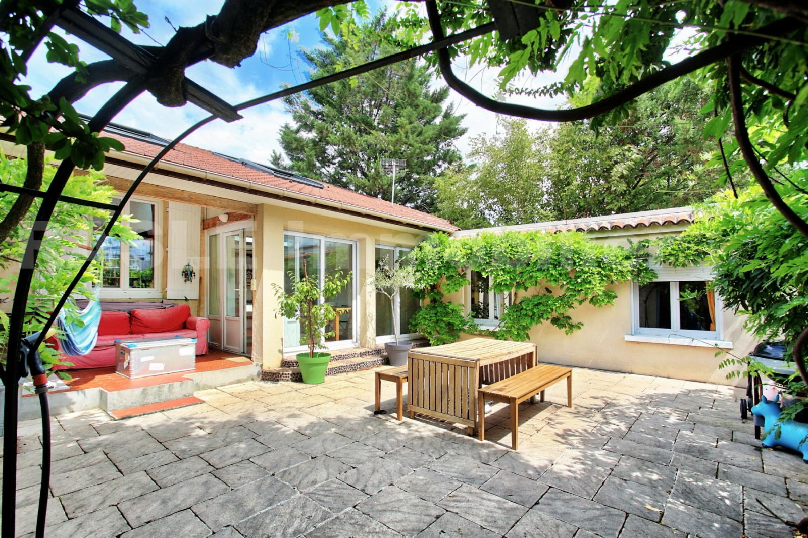 Coup de coeur assuré pour cette maison atypique et en bon état générale de 4 pièces d?environ 82 m² située dans un quartier très recherché offrant un environnement calme et familial. Elle comprend un salon/salle à manger avec une cuisine ouverte d'environ 35 m² donnant un accès direct sur terrasses exposées plein sud et sans vis à vis wc 2 belles chambres avec salles de bains et dressings ainsi qu'un point nuit en mezzanine avec rangements. La maison possède également une cave. Le tout édifiée sur un terrain de 219 m². 5'commerces 5' écoles et à seulement 9' RER A. Une exclusivité à saisir!