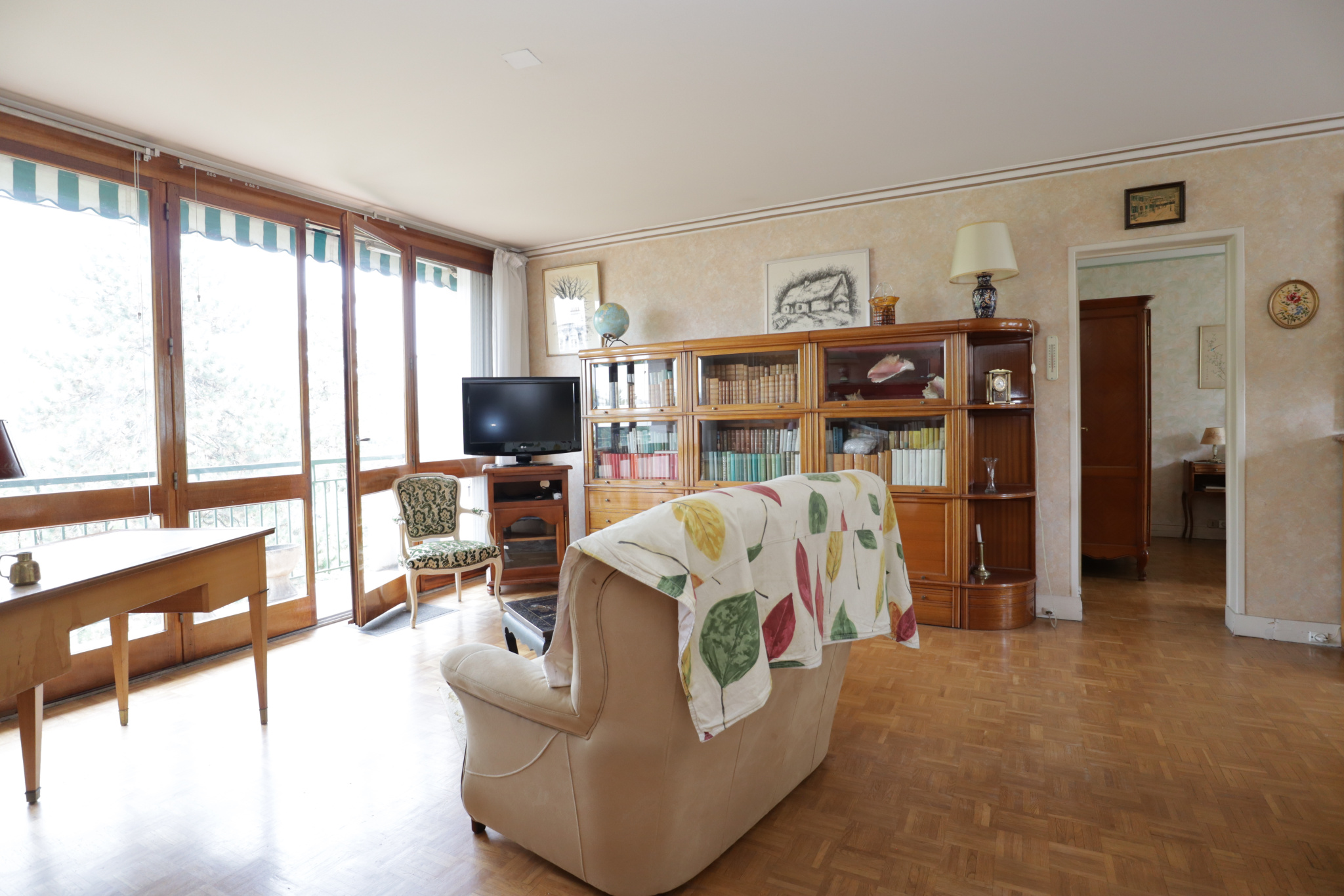 Résidence des années 60, secteur "Les Boutareines", à proximité immédiate des commerces, écoles et bus, et à seulement 14' du RER. Cet appartement familial et lumineux de 4 pièces d'une surface habitable de 75.48 m², situé en étage élevé, offre de nombreux atouts : copropriété sécurisée avec parc arboré, séjour double de 30.85 m² (avec possibilité de créer une troisième chambre), grand balcon de 7.65 m² avec vue dégagée sur la verdure, cuisine dînatoire avec cellier, rangements intégrés. Il comprend : une entrée avec placards, une grande pièce de vie, une cuisine avec cellier, deux chambres, une salle de bains et un wc. Une cave et un stationnement extérieur libre complètent ce bien. Travaux à prévoir.