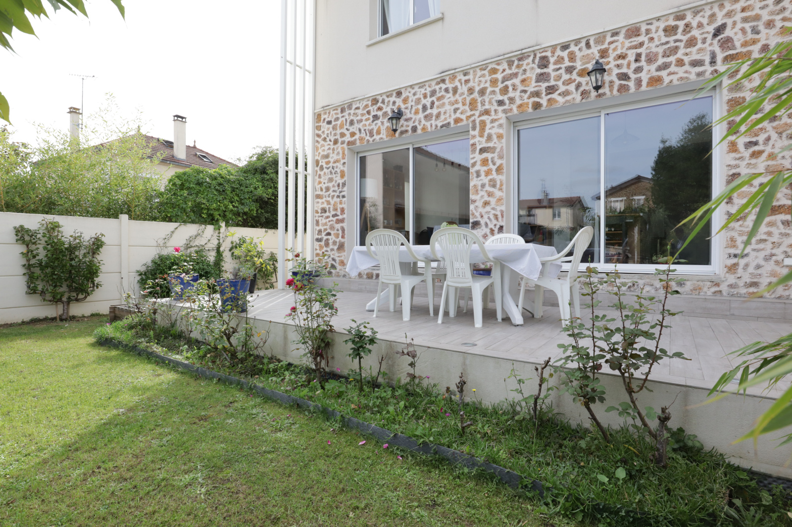 Au calme, coup de coeur pour cette belle meulière entièrement rénovée bénéficiant d'un agrandissement moderne réalisé en 2020 de 6 pièces dont 4 chambres et d'un espace bureau d'une surface habitable de 120,71 m² et d'une surface au sol totale de 165.31 m². Elle est située dans le quartier recherché de Champignol à seulement 10' du RER, 5' des écoles, 9 'des commerces et du marché. Elle offre de nombreux atouts : localisation, le parfait mariage du charme de l'ancien et du moderne, bien agencée, aucuns travaux, prestations de qualités, nombreux rangements, double vitrage, cuisine équipée ouverte sur salle à manger donnant un accès direct sur une grande terrasse et jardin, grand garage avec stationnements extérieurs, DPE C...Elle comprend au rez-de-chaussée : entrée avec placards, salon, cuisine équipée ouverte sur salle à manger donnant un accès sur terrasse-jardin, wc indépendant. Au premier étage : palier, 4 chambres dont une sur balcon et avec sa salle d'eau privative, un espace bureau, une salle d'eau avec wc. Un sous-sol et un grand garage extérieur complètent ce bien. Le tout édifié sur un terrain de 366 m².