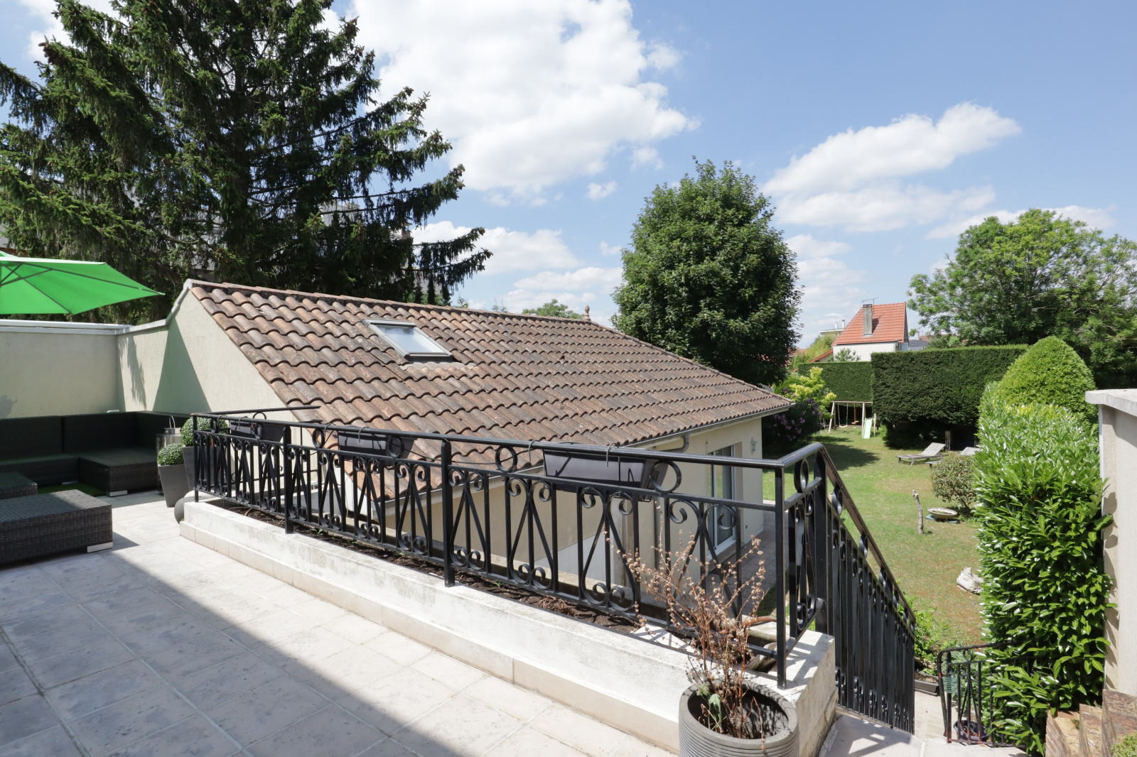 Située au calme d'un quartier pavillonnaire recherché, cette maison familiale des années 60 se distingue par son excellent état d'entretien général et ses volumes généreux. Edifiée sur une parcelle d'environ 688 m², piscinable, elle développe environ 190 m² habitables et environ 342 m² de surface au sol, auxquels s'ajoute une dépendance entièrement aménagée de 36 m² habitables (53 m² au sol). Le rez-de-chaussée surélevé s'ouvre sur deux grandes terrasses offrant un accès direct au jardin. Il comprend : une entrée, une cuisine ouverte sur salle à manger de 36 m² prolongée par une terrasse de 35 m² avec escalier menant au jardin, un salon lumineux de 30 m² avec cheminée, donnant sur une seconde terrasse de 25 m² avec accès sur une grande cour via un escalier, une belle chambre, un dégagement avec placards, une salle d'eau, un wc indépendant. A l'étage : un palier distribue quatre grandes chambres, un bureau (ou pièce polyvalente), une salle de bains, un wc indépendant. En rez-de-jardin : un vaste espace d'environ 152 m² offre de nombreuses possibilités d'aménagement : profession libérale, salle de jeux, salle home cinéma, atelier, chambres supplémentaires ... etc. Enfin, la maison bénéficie de plusieurs stationnements, d'un grand garage, et d'un agréable jardin. Emplacement idéal : 7' à pied des commerces et marché, 9' des écoles maternelle et primaire des Mûriers, 5' du collège Louis Blanc, 3' du bus et 1600 mètres du RER de la Varenne.